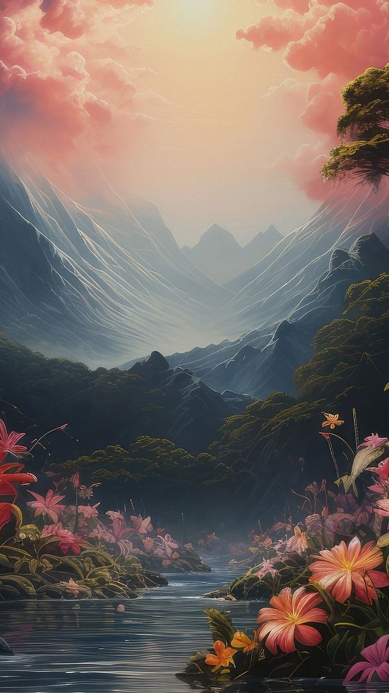 Digital erstellte tropische Fantasie und surreale Landschaft