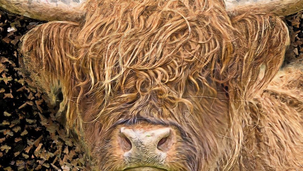 Entdecken Sie den Charme des Landlebens mit diesem wunderschönen digitalen Gemälde einer schottischen Hochlandkuh. Diese majestätischen Tiere, die für ihre langen Hörner und ihr charakteristisches Fell bekannt sind, sind seit Jahrhunderten eine Ikone des ländlichen Lebens, und dieses digitale Gemälde ist eine perfekte Ergänzung für jeden Raum. Die schönen Farben und Details der schottischen Hochlandkuh machen das Bild zu einem echten Hingucker. Egal, ob Sie ein Tierliebhaber sind oder einfach nur auf der Suche nach einem einzigartigen Stück zur Dekoration Ihres Interieurs sind, dieses digitale Gemälde einer Highlander-Kuh wird Sie sicher beeindrucken. Es ist ein perfektes Geschenk für Freunde und Familie, die auch das Landleben lieben Diese Version ist in Farbe, aber eine ist auch in schwarz und weiß erhältlich