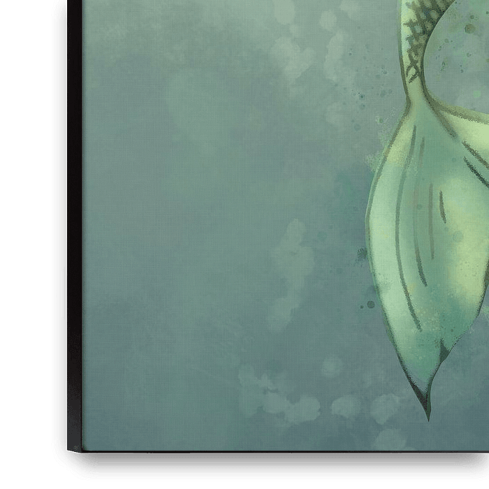 Schöne Illustration einer Meerjungfrau. Digital kolorierte Kunstwerke. Unterwasser-Fantasiewelt mit Grün- und Blautönen.