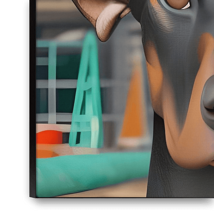 Dobermann als Bauarbeiter