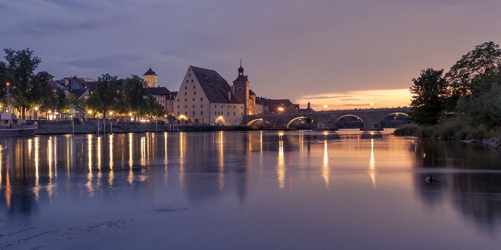 Dom und Steinerne Brücke von Regensburg, Bayern, an der Donau