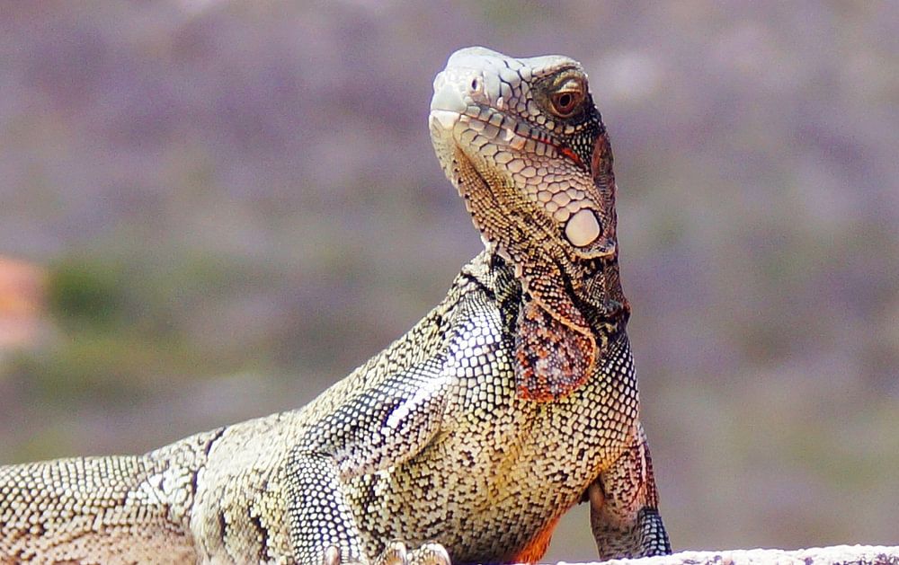 Dieser Leguan sitzt da wie ein König! Der Antillen-Leguan ist eine große Eidechse, die auf einigen Inseln in der Karibik vorkommt, in diesem Fall auf Curaçao.