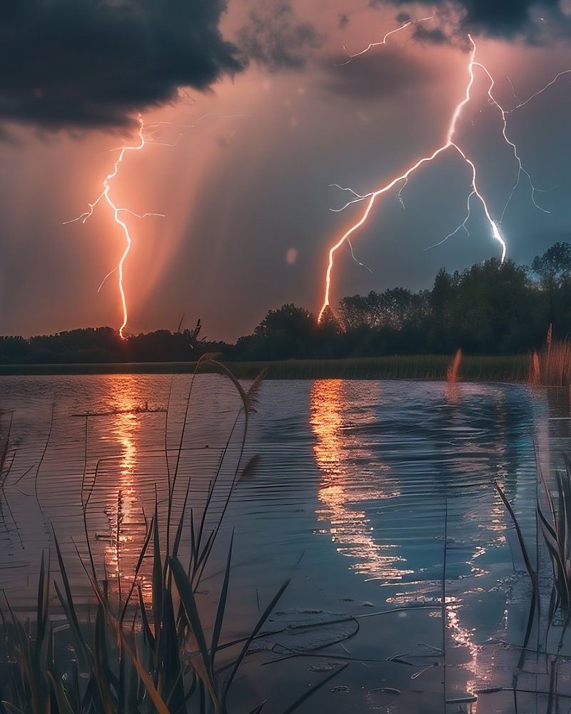 Dramatischer Augenblick: Blitze durchbrechen Nacht