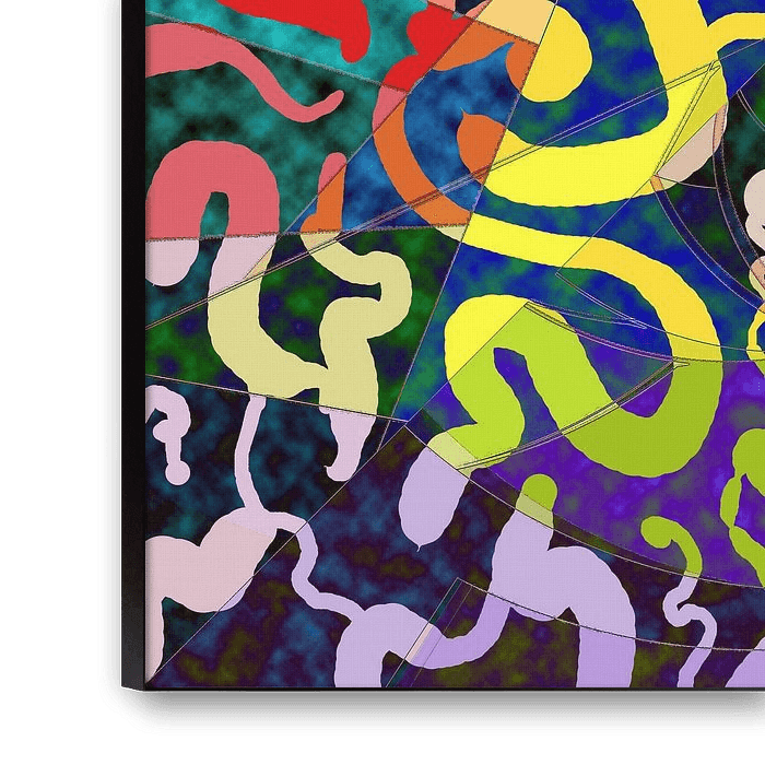 Triangles 2 ist ein zeitgenössisches abstraktes Kunstwerk von Slow aus dem Jahr 2024. Das Bild erforscht das Zusammentreffen von Geometrie und organischer Bewegung und schafft eine vibrierende Komposition, in der die farbigen Formen in einem Energiewirbel zu tanzen scheinen. Die leuchtenden Kurven, intensiven Kontraste und vielfältigen Schattierungen - von tiefem Violett bis hin zu strahlendem Gelb - vermitteln die Dynamik menschlicher Emotionen und die Kraft der Farbe.