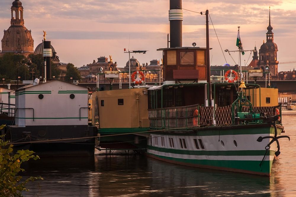 Blick auf Dresdner Altstadt am Abend von Elbufer