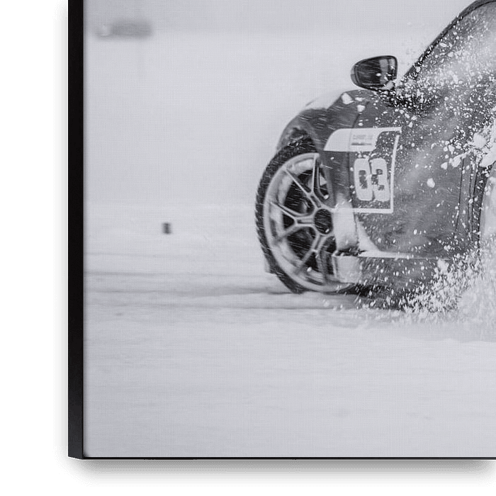 Bestelle das Foto Driftender Porsche 992 GT3 in Lappland von Bas Fransen als Reproduktion auf Leinwand, Alu-Dibond, als Poster, Fototapete oder Acrylglasbild.