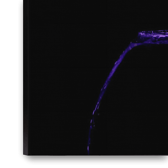 Men neme een externe flitser, een paars filter, een kom met water en een Ferrero Rocher. Druppelfotografie met Strobist fotografie levert een prachtig rustgevend plaatje op. Door het echte zwart komt dit prachtig uit in elke ruimte....