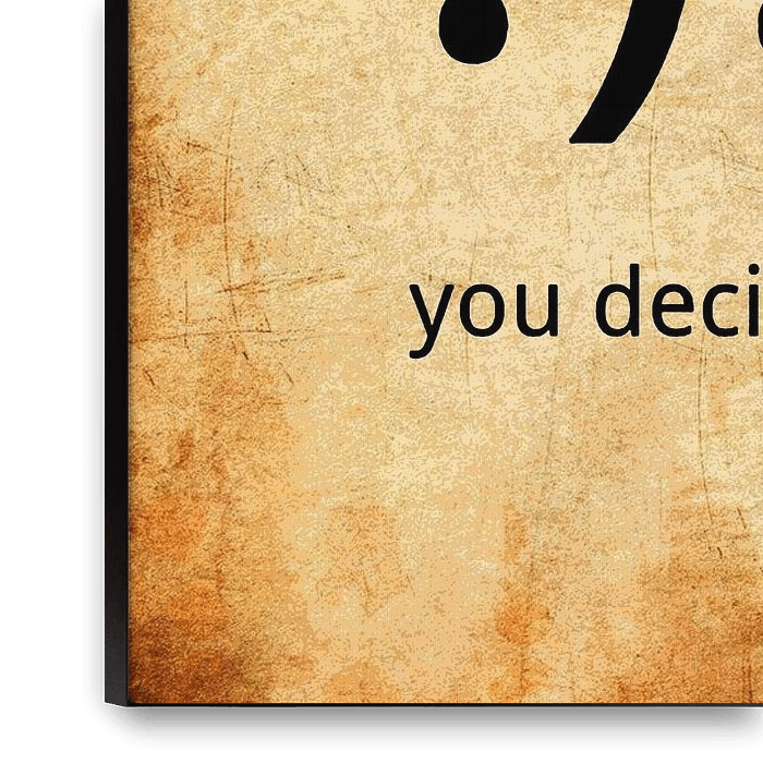Das Bild zeigt ein einfaches schwarz-weißes Smiley-Gesicht mit einem geschwungenen Mund und zwei Punkten als Augen, das auf einem strukturierten Hintergrund dargestellt ist, der an gealtertes Pergament erinnert. Der Hintergrund ist überwiegend braun mit einem Hauch von Orange und Gelb, wodurch eine Vintage-Ästhetik entsteht. Der Text…