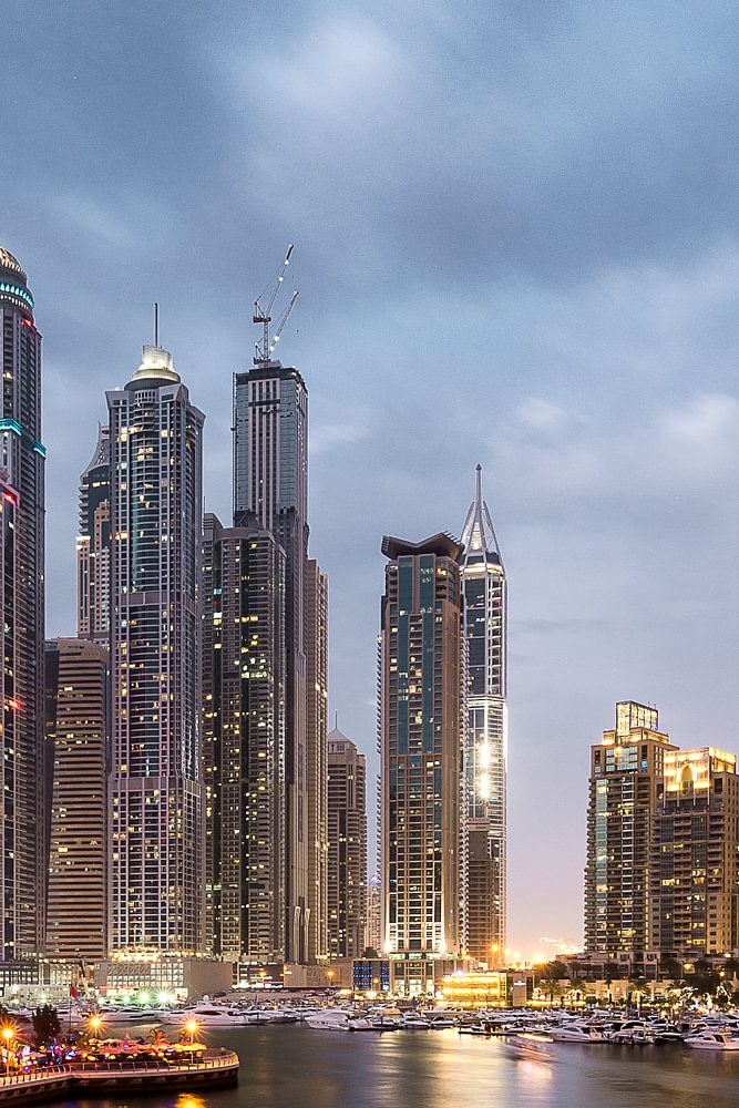 Dubai Marina mit Boot und Skyline