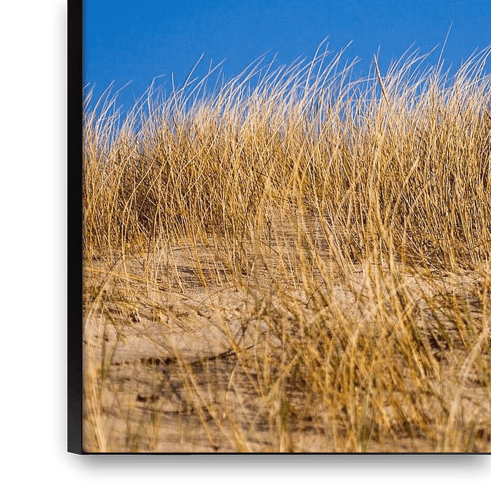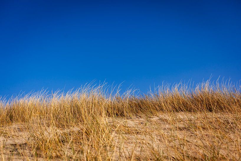 Bestelle das Foto Düne mit Strandhafer vor strahlend blauem Himmel von Marc-Jan als Reproduktion auf Leinwand, Alu-Dibond, als Poster, Fototapete oder Acrylglasbild.