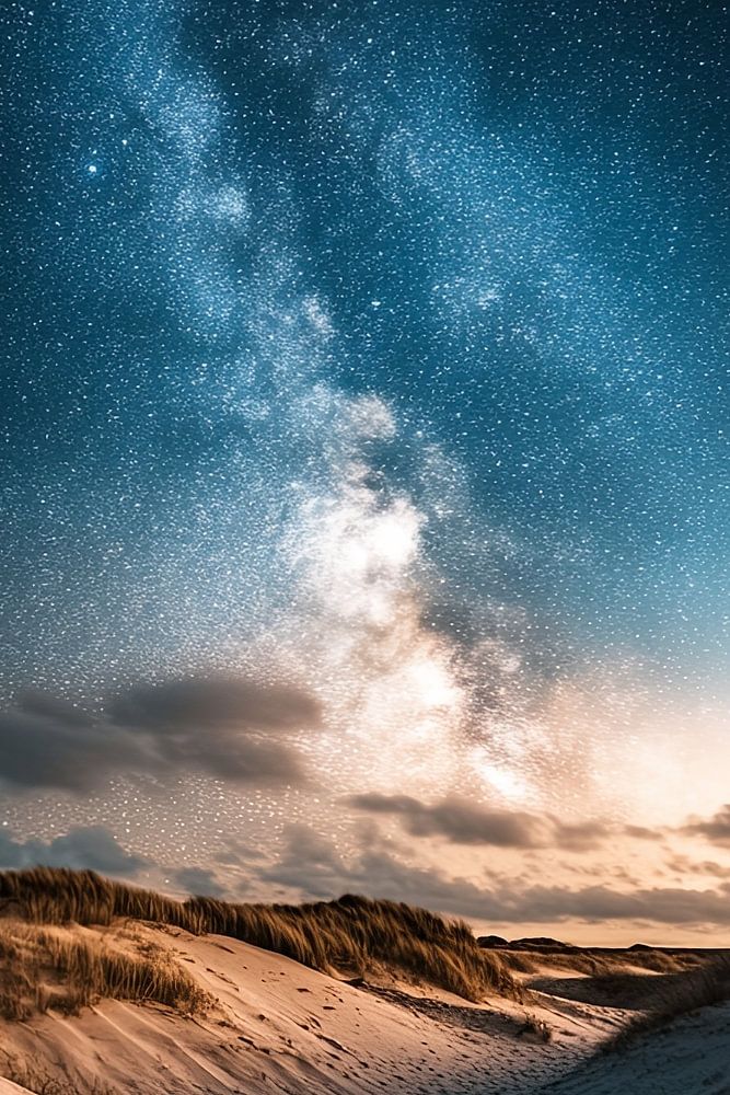 Dünenlandschaft am Abend mit Milchstraße Wattenmeer
