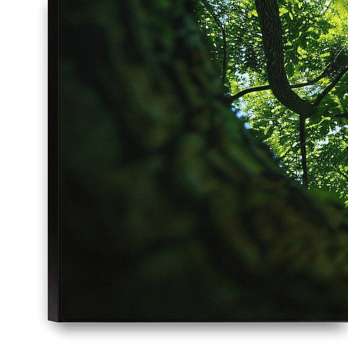 Dieser Entwurf fängt die heitere Schönheit der Natur durch eine einzigartige Linse ein. Man blickt durch eine kreisförmige Öffnung nach oben, wo die Sonne durch das dichte Laub der Bäume bricht. Das zarte Grün der Blätter und die raue Textur der Baumstämme vermitteln ein Gefühl der Ruhe und der Verbundenheit mit der Natur. Dieses Stück…