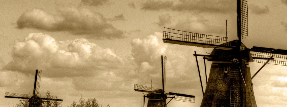 Molens Kinderdijk. Dit typische Hollandse plaatje met oude uitstraling is in April 2013 genomen.