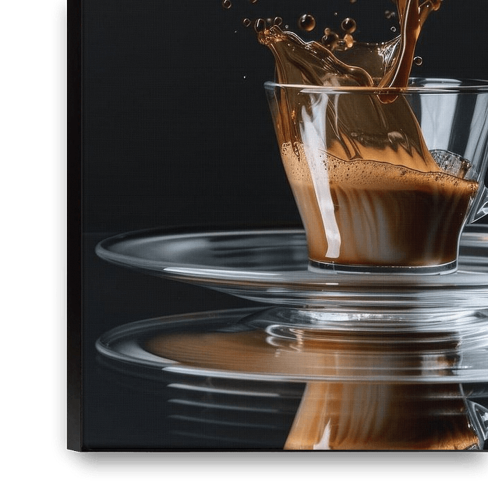 Bestelle dieses abstrakte Wandbild Dynamischer Kaffee - Kunstvolle Momentaufnahme in Bewegung von Poster Art Shop als Reproduktion auf Leinwand, Alu-Dibond, als Poster, Fototapete oder Acrylglasbild.