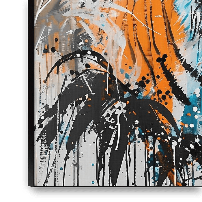 Dieses lebendige Kunstwerk zeigt einen majestätischen Tiger inmitten einer Explosion von Farben und dynamischen Mustern. Die Kombination aus leuchtenden Orangetönen und kontrastierenden schwarzen und weißen Akzenten erzeugt einen starken visuellen Effekt, der sofort die Aufmerksamkeit auf sich zieht. Dieses Gemälde ist perfekt für…