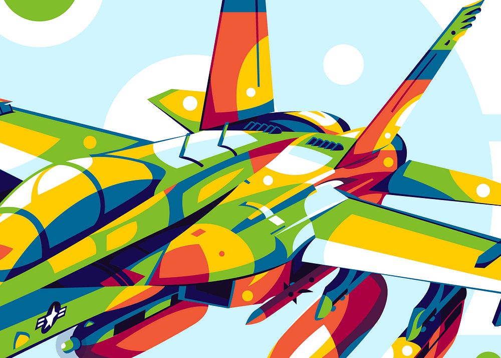 EA-18G Growler Pop Art mit geschwungenen Formen und einer Kombination aus vielen Farben zu einem niedlichen, eleganten, coolen und natürlich bunten EA-18G Growler Objekt.