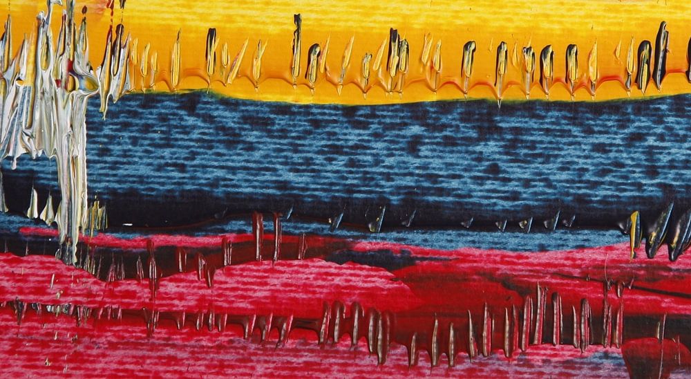 Dieses Gemälde erinnert mich an ein Elektrokardiogramm, einen Herzfilm, der von gelegentlichen Pausen unterbrochen wird.