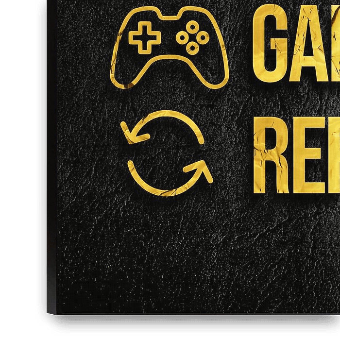 Bestelle das digitale Kunst Bild Eat Sleep Game Repeat von Steven Kingsbury als Reproduktion auf Leinwand, Alu-Dibond, als Poster, Fototapete oder Acrylglasbild.