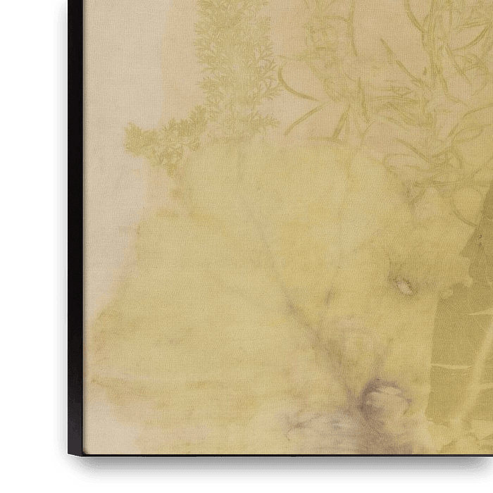 Bestelle dieses abstrakte Wandbild Ecoprint von Wildpflanzen Collage von Liesbeth Bulk als Reproduktion auf Leinwand, Alu-Dibond, als Poster, Fototapete oder Acrylglasbild.