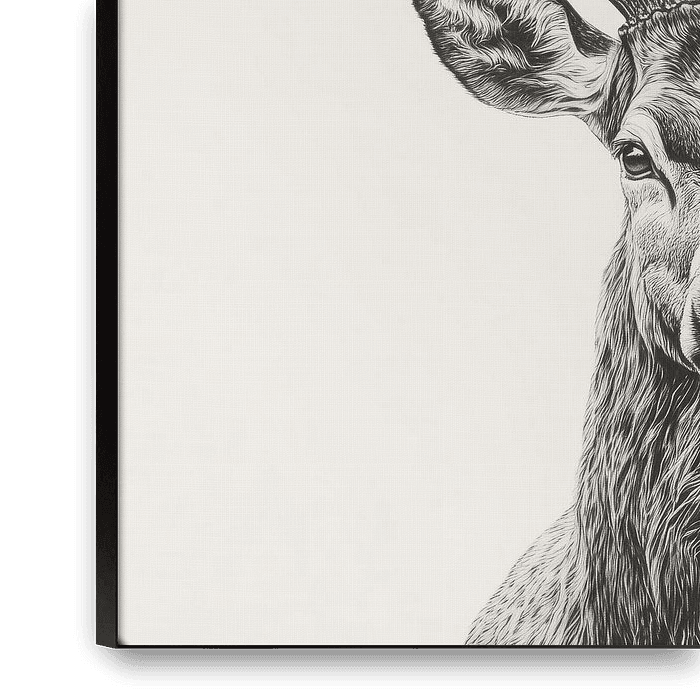 Diese beeindruckende Bleistiftzeichnung zeigt einen majestätischen Rothirsch in einer klassischen Portraitdarstellung, die durch ihre außergewöhnliche Detailgenauigkeit besticht. Das imposante Geweih mit seinen vielen Enden dominiert die obere Bildhälfte und verleiht dem Tier eine königliche Ausstrahlung. Die monochrome Farbgebung in…