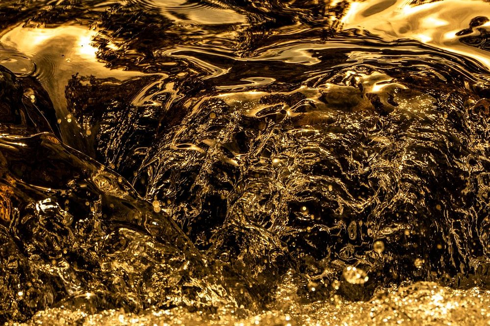 Dieses Bild zeigt die faszinierende Schönheit des Wassers in einer neuen Dimension. Es fängt die Essenz von natürlichem Wasser auf einzigartige Weise ein, mit flüssigem, schimmerndem Gold. Die goldenen Töne schaffen eine schicke und luxuriöse Atmosphäre, die perfekt zu modernen und eleganten Innenräumen passt. Dieses Bild verkörpert die perfekte Harmonie zwischen natürlicher Pracht und menschlicher Kultiviertheit und wird in jedem Raum, in dem es ausgestellt wird, ein zentrales Kunstwerk sein.