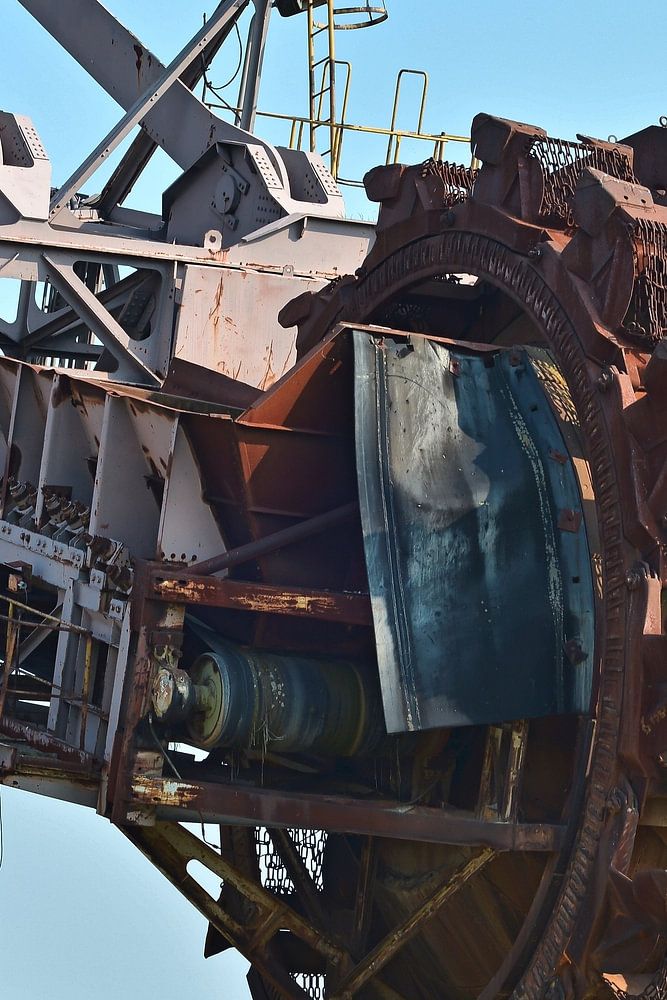 Ehemaliger Kohlebagger im früheren Tagebau Golpa-Nord bei Gräfenhainichen. Die Gebäude und nicht mehr benötigten Braunkohlebagger des Tagebaus sind heute Museum und Veranstaltungsort und können besichtigt werden. Der ehemalige Tagebau ist heute als Veranstaltungsort für Konzerte unter dem Namen Ferropolis bekannt.