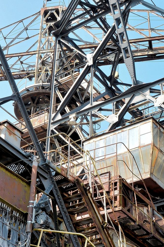 Ehemaliger Kohlebagger im früheren Tagebau Golpa-Nord bei Gräfenhainichen. Die Gebäude und nicht mehr benötigten Braunkohlebagger des Tagebaus sind heute Museum und Veranstaltungsort und können besichtigt werden. Der ehemalige Tagebau ist heute als Veranstaltungsort für Konzerte unter dem Namen Ferropolis bekannt.
