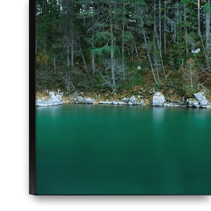Bestelle dieses Bestsellers Landschafts-Wandbild Eibsee bei Garmisch Partenkirchen in den Alpen mit Zugspitzmassiv. von Voss Fine Art Fotografie als Reproduktion auf Leinwand, Alu-Dibond, als Poster, Fototapete oder Acrylglasbild.