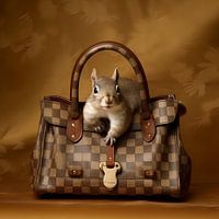 Bestelle das digitale Kunst Bild Eichhörnchen mit Handtasche von YArt als Reproduktion auf Leinwand, Alu-Dibond, als Poster, Fototapete oder Acrylglasbild.