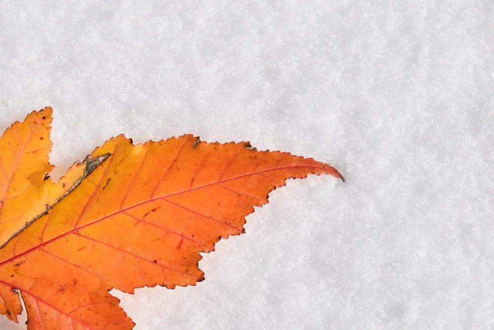 Ein Ahornblatt im Schnee, Sainte-Apolline, Quebec, Kanada