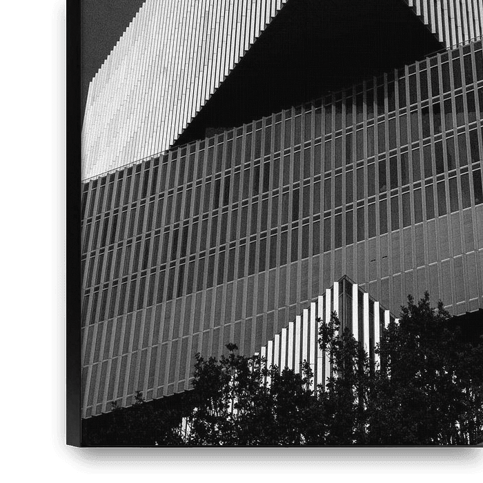Ein Dreieck auf einem Dreieck auf einem Dreieck in Amsterdam in Schwarz und Weiß.