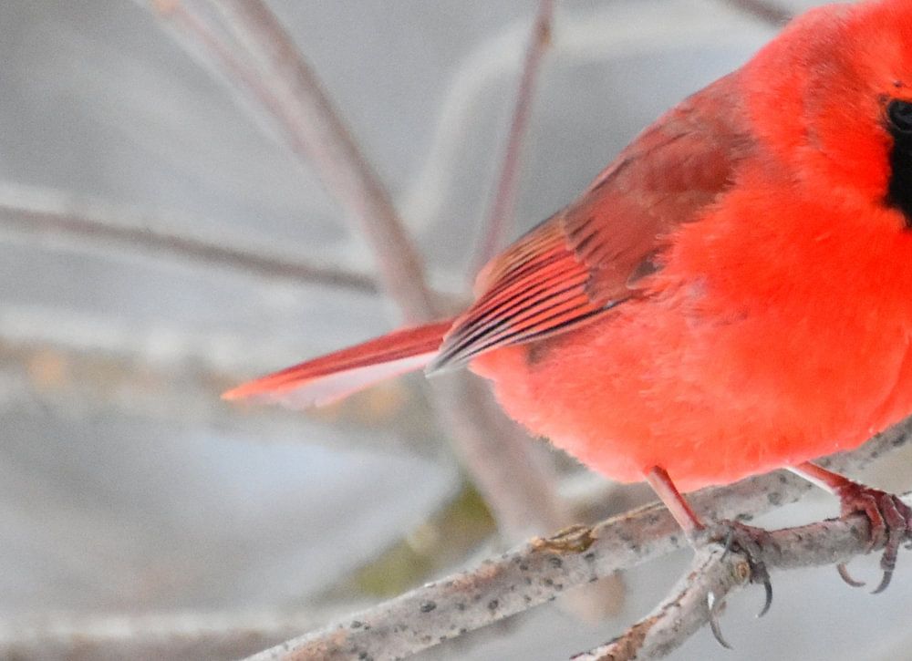 Ein Kardinalvogel im Frühling, Sainte-Apolline, Quebec, Kanada