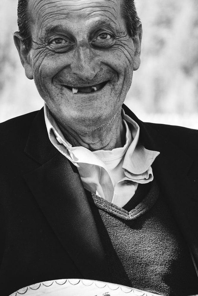 Dieser Mann - die Augen voller Licht, die Hände auf dem Instrument - lächelt, als ob die Welt einen Moment lang kein Gewicht hätte. Man hört die Musik nicht, aber man spürt sie. In den Falten, in der Ruhe, in dem Moment, in dem nichts mehr sein muss als er.