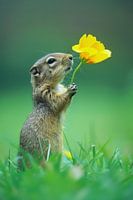 Bestelle dieses Blumen-Wandbild Ein Nager voller Freude mit Blume von Poster Art Shop als Reproduktion auf Leinwand, Alu-Dibond, als Poster, Fototapete oder Acrylglasbild.