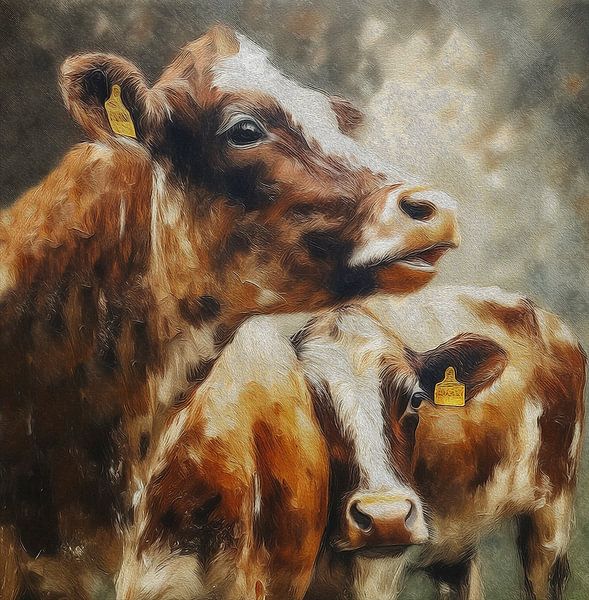 Bestelle dieses Kuh-Wandbild Ein Paar Kühe von Marjolein Deelen als Reproduktion auf Leinwand, Alu-Dibond, als Poster, Fototapete oder Acrylglasbild.