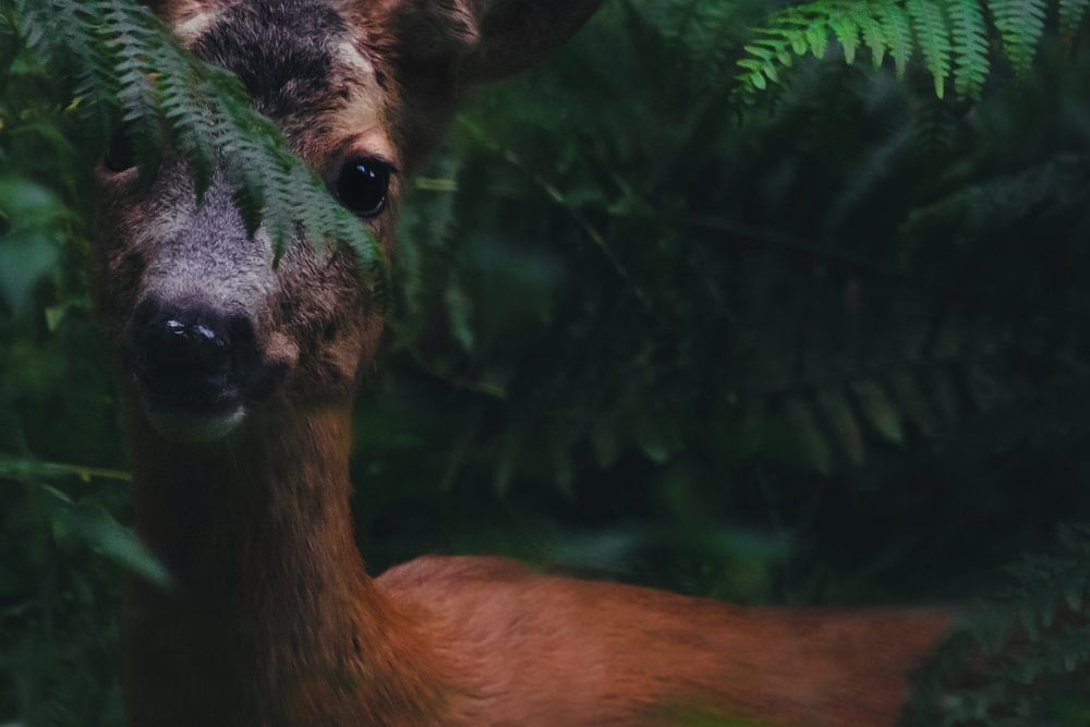 Bei einem Spaziergang im Stadtwald haben mein Mann und ich plötzlich dieses Reh im Gebüsch direkt neben dem Weg entdeckt. Es hat uns ganz lange so angeschaut und uns erlaubt schöne Bilder zu schießen, bis plötzlich Radfahrer an uns vorbeigefahren sind und es erschrocken in den dunklen Wald abgetaucht ist. Das bernsteinfarbene Fell sticht wunderschön im Kontrast zu dem saftigen, dunkelgrünen Farn hervor. Die ruhigen, großen, schwarzen Augen faszinieren mich immer wieder. Diese Augen könnten der Blickfang auch in Deinem Raum sein.