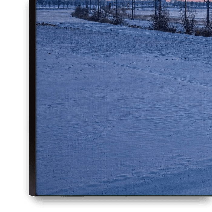 Bestelle das Foto Ein Sprinter in einer eisigen Landschaft vor Sonnenaufgang bei Kampen von Stefan Verkerk fotografie als Reproduktion auf Leinwand, Alu-Dibond, als Poster, Fototapete oder Acrylglasbild.