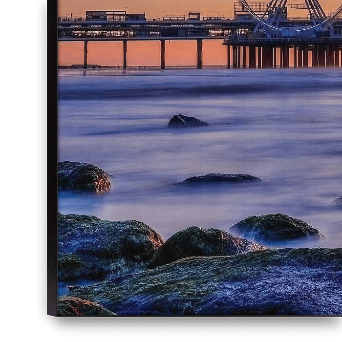 Bestelle das Foto Ein beruhigender Sonnenuntergang in Scheveningen von Bea Budai als Reproduktion auf Leinwand, Alu-Dibond, als Poster, Fototapete oder Acrylglasbild.