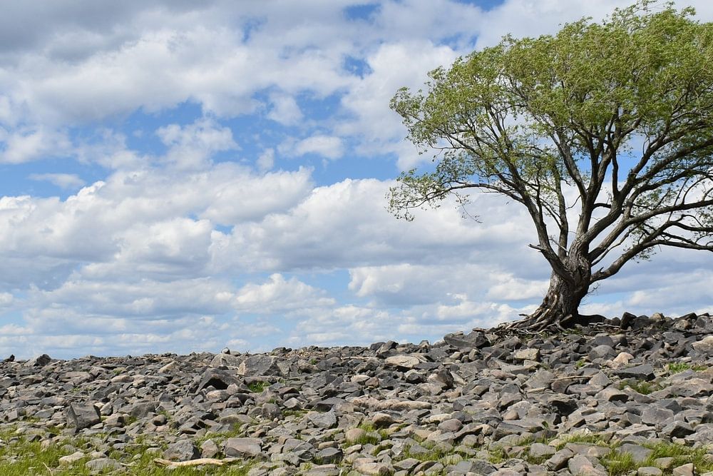 Ein einsamer Baum am Flussufer, Quebec, Kanada