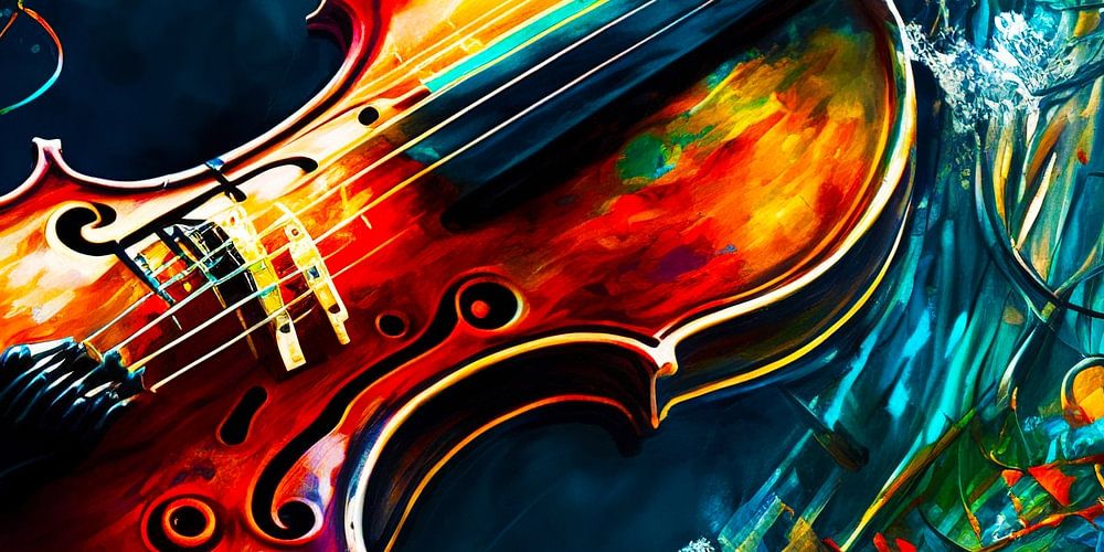 Über "Ein farbenfrohes abstraktes Gemälde einer Geige: Harmonie"