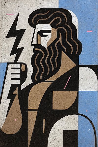 Bestelle dieses abstrakte Wandbild Ein geometrisches Gemälde des Gottes Zeus. von Galerie Hoppenbrouwers als Reproduktion auf Leinwand, Alu-Dibond, als Poster, Fototapete oder Acrylglasbild.