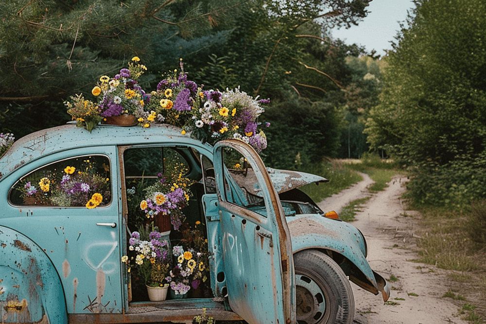 Dieses schöne Werk zeigt eine bezaubernde Szene eines Oldtimers, der mit einer Fülle von bunten Blumen geschmückt ist. Das Auto mit seinen klassischen Linien und seinem nostalgischen Charme ist ein perfektes Beispiel für zeitlose Eleganz. Dieser Fotodruck ist mit einem Meer von Blumen in sanften Pastellfarben gefüllt und bringt Freude und Frische in jeden Raum. Die Farben, die von zartem Rosa über Hellblau bis hin zu sanftem Gelb reichen, schaffen eine ruhige und heitere Atmosphäre, die perfekt zur Sommerstimmung passt. Es ist, als würde man sich in die Zeit eines unbeschwerten Sommertages zurückversetzen, an dem alles möglich scheint und die Luft vom Duft blühender Blumen erfüllt ist.