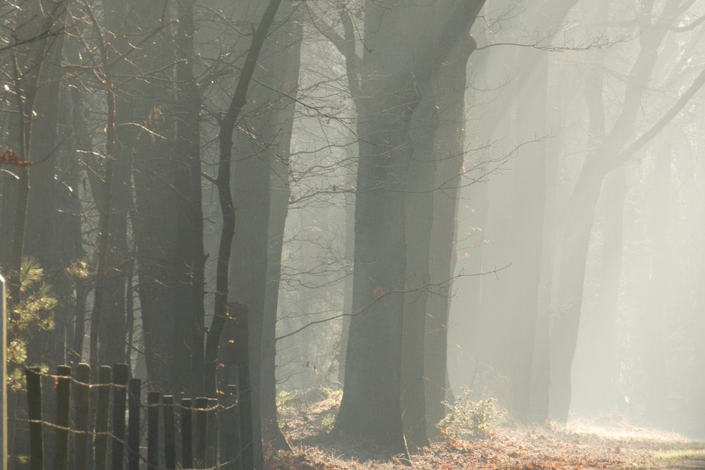 Die Sonne scheint durch die Bäume und macht schöne Sonnenharfen.