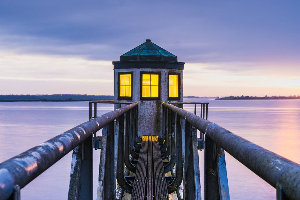 Ein spektakulärer Sonnenaufgang am letzten Tag im November über dem Lauwersmeer. Es herrscht eine heitere und ruhige Atmosphäre, und am Himmel sind wunderschöne Farben zu sehen.