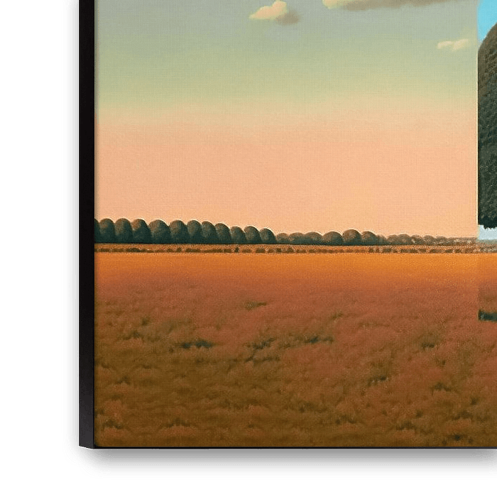 Auf den ersten Blick sieht dieses schöne Werk aus wie ein schöner Sonnenuntergang in einer bäuerlichen Landschaft. Aber ist es jetzt die Tagesdämmerung? Und gibt es jetzt ein Gebäude oder eine Spiegelung von vor ein paar Stunden? Große und kleine Elemente der Natur sind in diesem Werk miteinander verwoben und bilden ein schönes Zusammenspiel mit den sommerlichen Farben des Himmels. Für dieses surrealistische Werk habe ich mich von Magritte, Escher und Dali inspirieren lassen und ihre Techniken gemischt. Sie können sich dieses Werk immer wieder ansehen und es ist definitiv ein toller Gesprächsanlass!