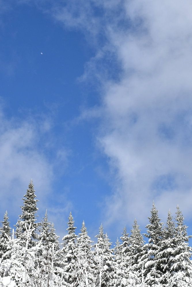 Ein verschneiter Wald im Winter, Sainte-Apolline, Quebec, Kanada