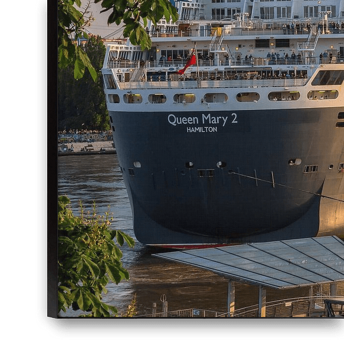 Das Kreuzfahrtschiff Queen Mary 2 dockt in Hamburg an den Landungsbrücken ein.