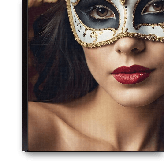 Bestelle dieses Porträt Eine Frau mit einer Karnevalsmaske von 1xMerch als Reproduktion auf Leinwand, Alu-Dibond, als Poster, Fototapete oder Acrylglasbild.
