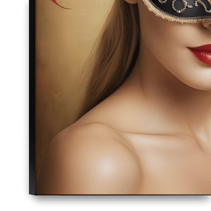 Bestelle dieses Porträt Eine Frau mit einer Karnevalsmaske von 1xMerch als Reproduktion auf Leinwand, Alu-Dibond, als Poster, Fototapete oder Acrylglasbild.