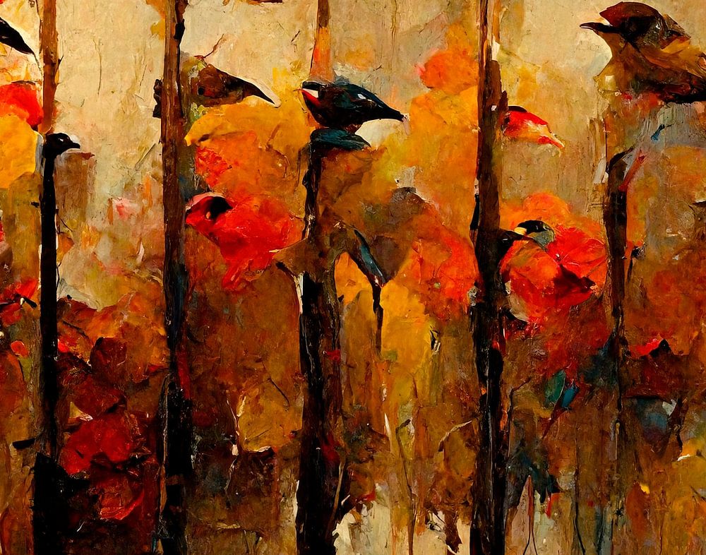 Ein farbenfrohes Gemälde, das den Frieden und die Lebendigkeit der schönen Natur an einem schönen Sommer-Herbst-Tag darstellt.